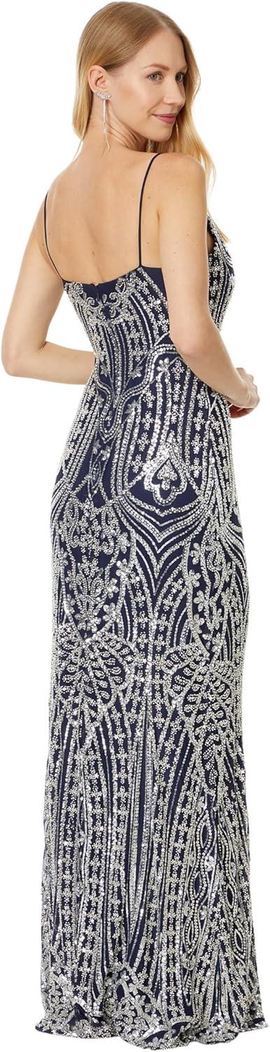Betsy & Adam Women’s Long Beded Sequin Placement Slit(Navy/Silver)