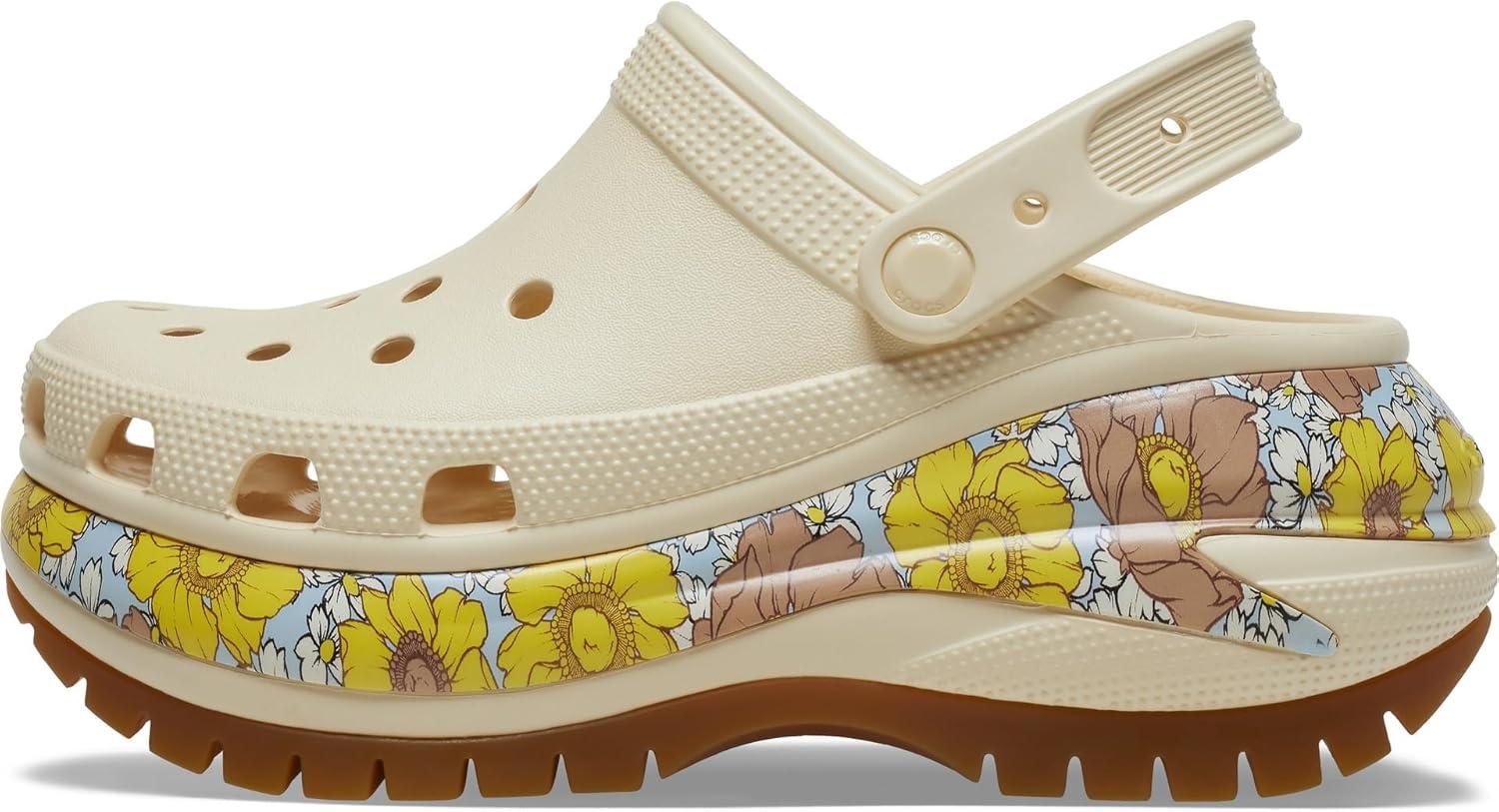 Crocs Unisex Adult Mega Crush Clogs(Vanilla/Multi Retro Floral)