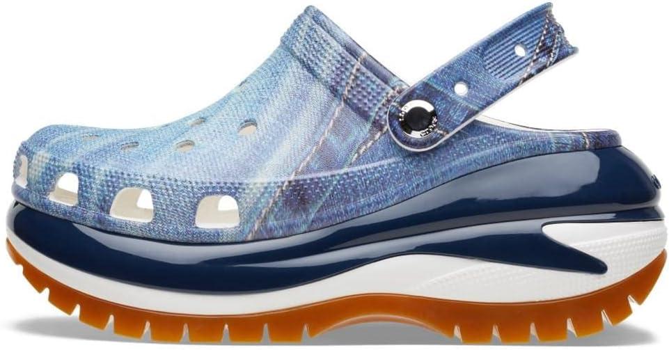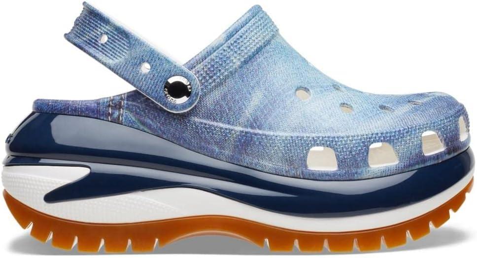 Crocs Unisex Adult Mega Crush Clogs(White/Multi Denim)