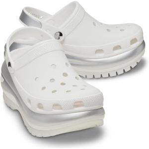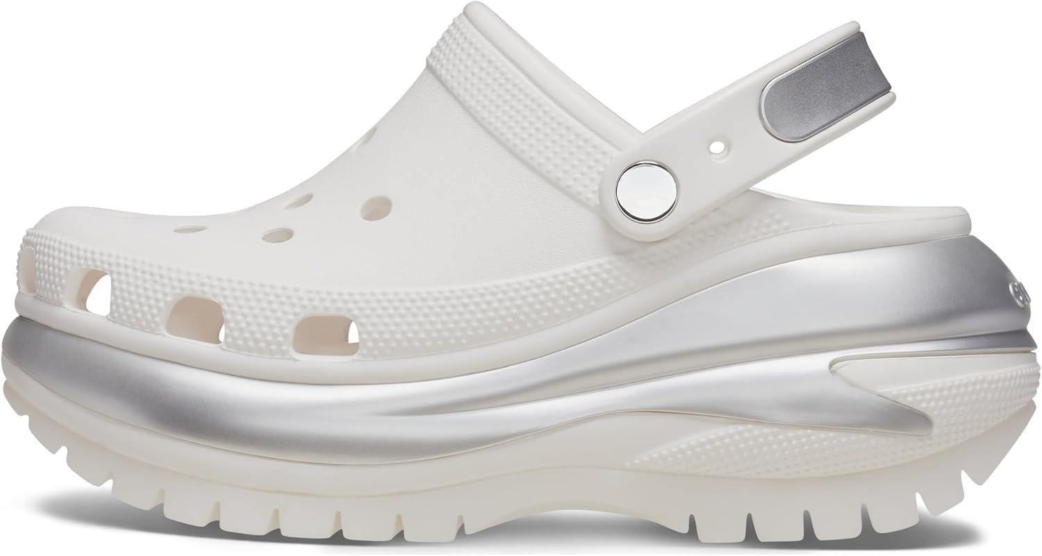 Crocs Unisex Adult Mega Crush Clogs(White/Silver)