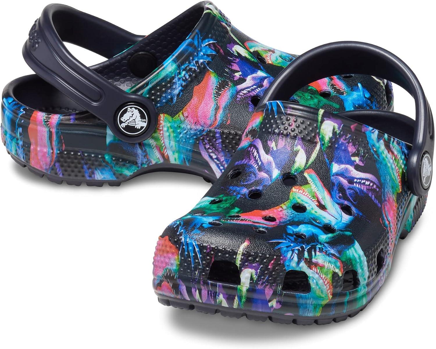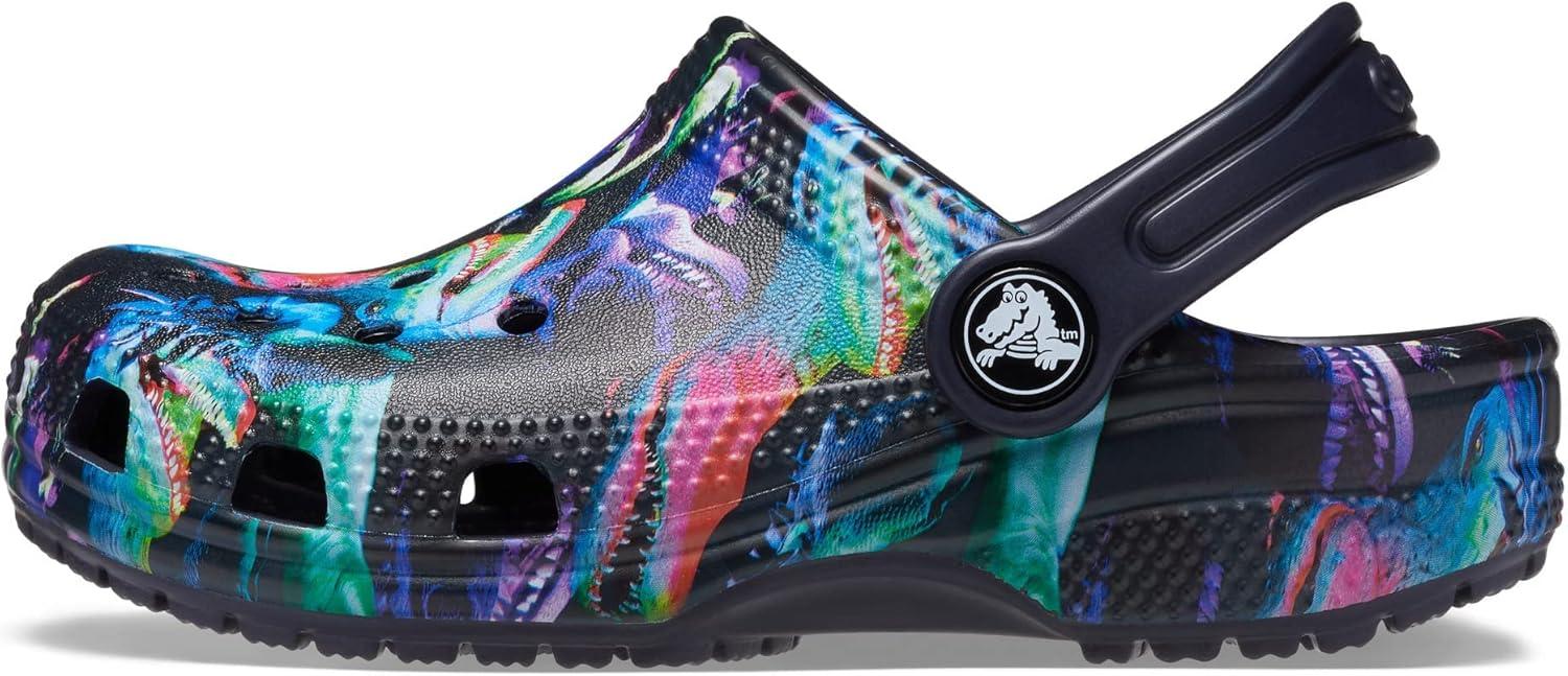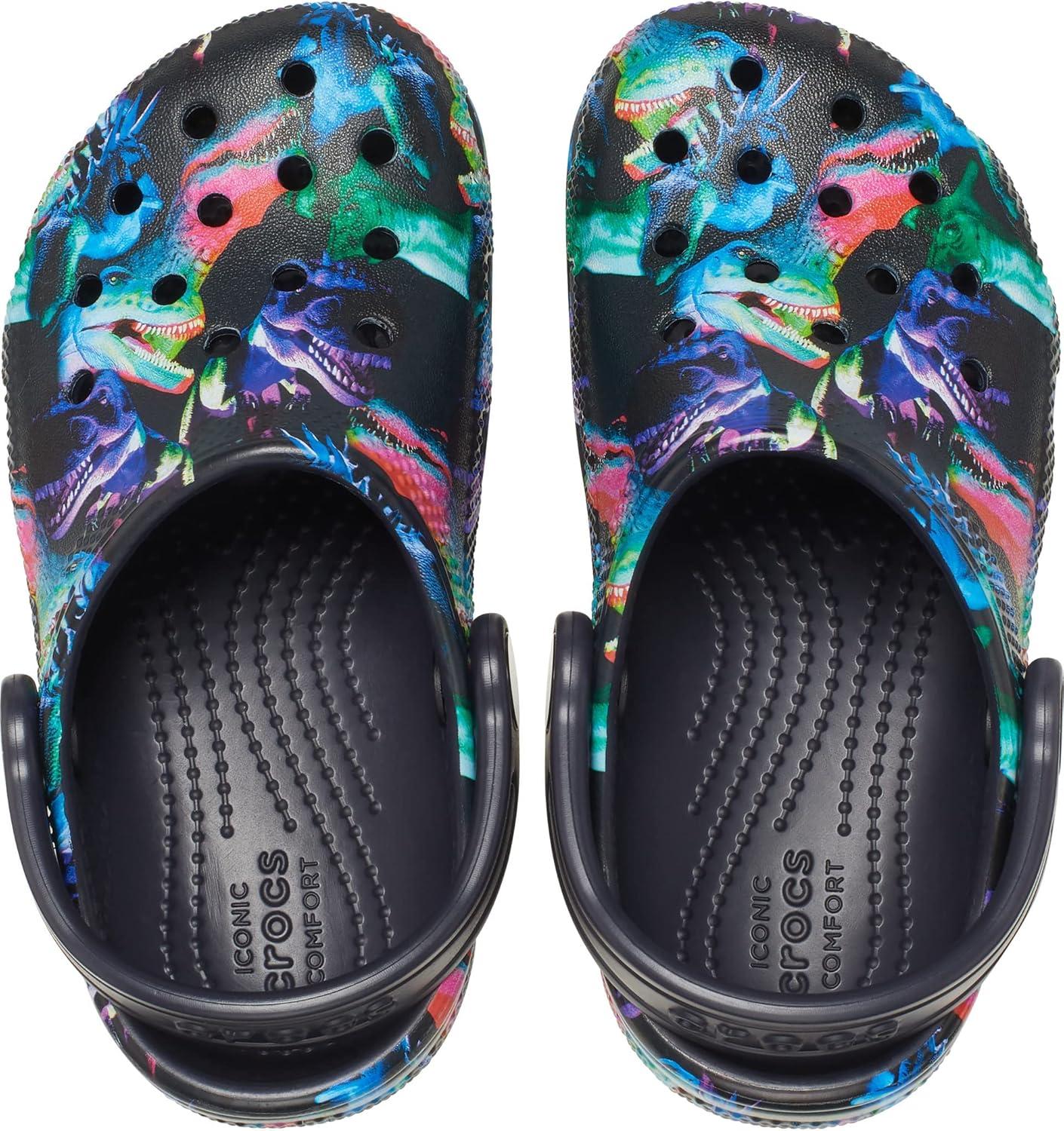 Crocs Kids’ Classic Glitter Clog(Deep Navy/Multi Dino)