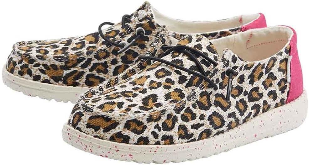 Hey Dude Girl’s Wendy Youth Multiple Sizes & Colors | Girl’s Shoes | Girl’s Lace Up Loafers | Lightweight & Comfortable(Cheetah)