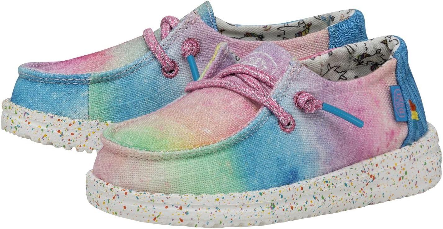 Hey Dude Girl’s Wendy Youth Multiple Sizes & Colors | Girl’s Shoes | Girl’s Lace Up Loafers | Lightweight & Comfortable(Rainbow Dreamer)