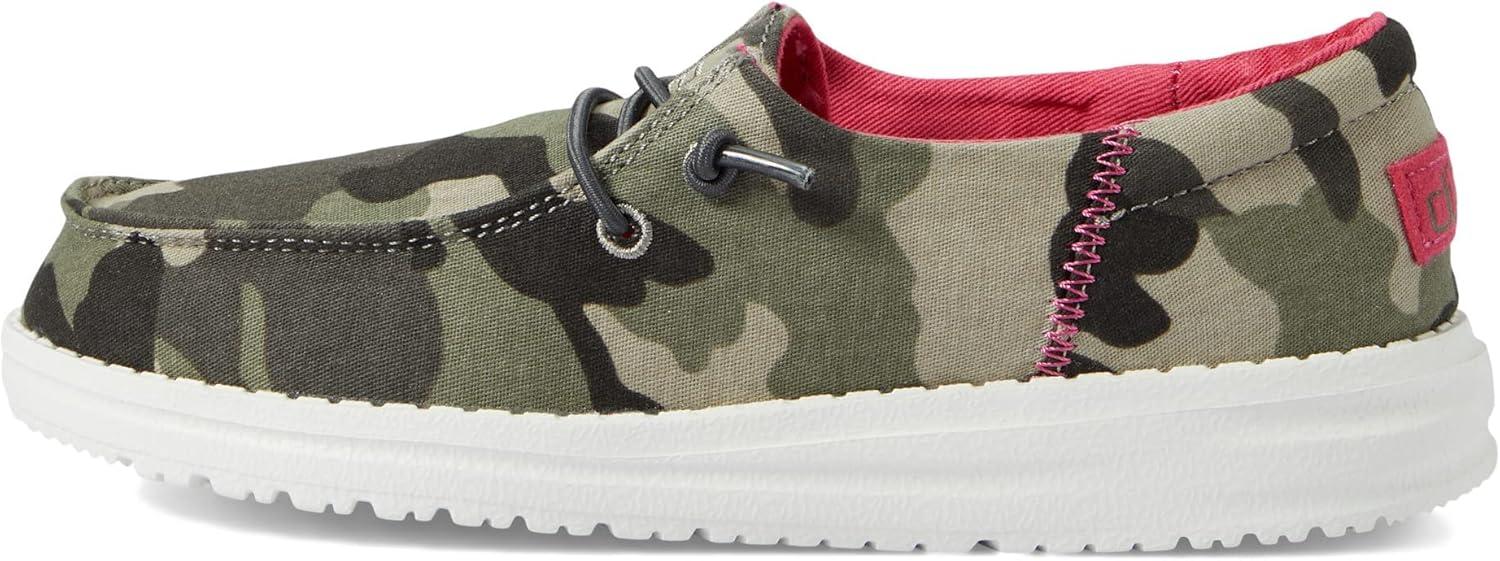 Hey Dude Girl’s Wendy Youth Multiple Sizes & Colors | Girl’s Shoes | Girl’s Lace Up Loafers | Lightweight & Comfortable(Funk Camo)