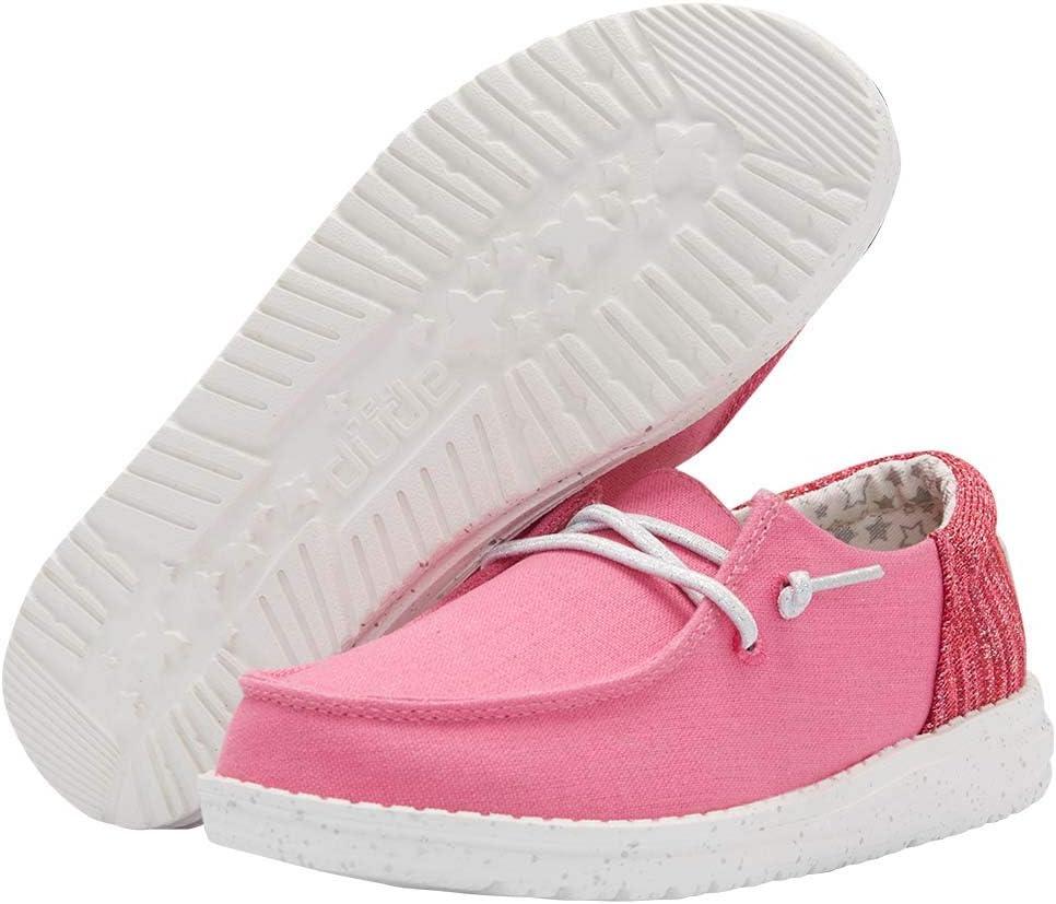 Hey Dude Girl’s Wendy Youth Multiple Sizes & Colors | Girl’s Shoes | Girl’s Lace Up Loafers | Lightweight & Comfortable(Linen Cotton Candy)