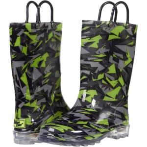 Western Chief Kids Waterproof Light Up Rain Boots With Handles for Easy On and Off for Boys and Girls(Camo Green)