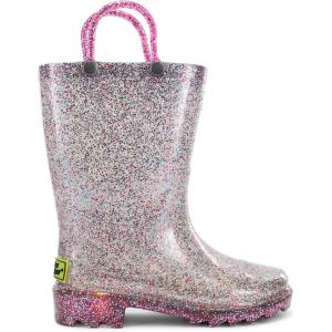Western Chief Kids Waterproof Light Up Rain Boots With Handles for Easy On and Off for Boys and Girls(Multi Glitter)
