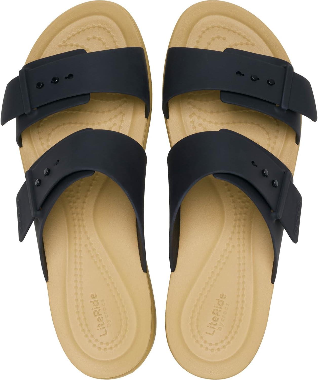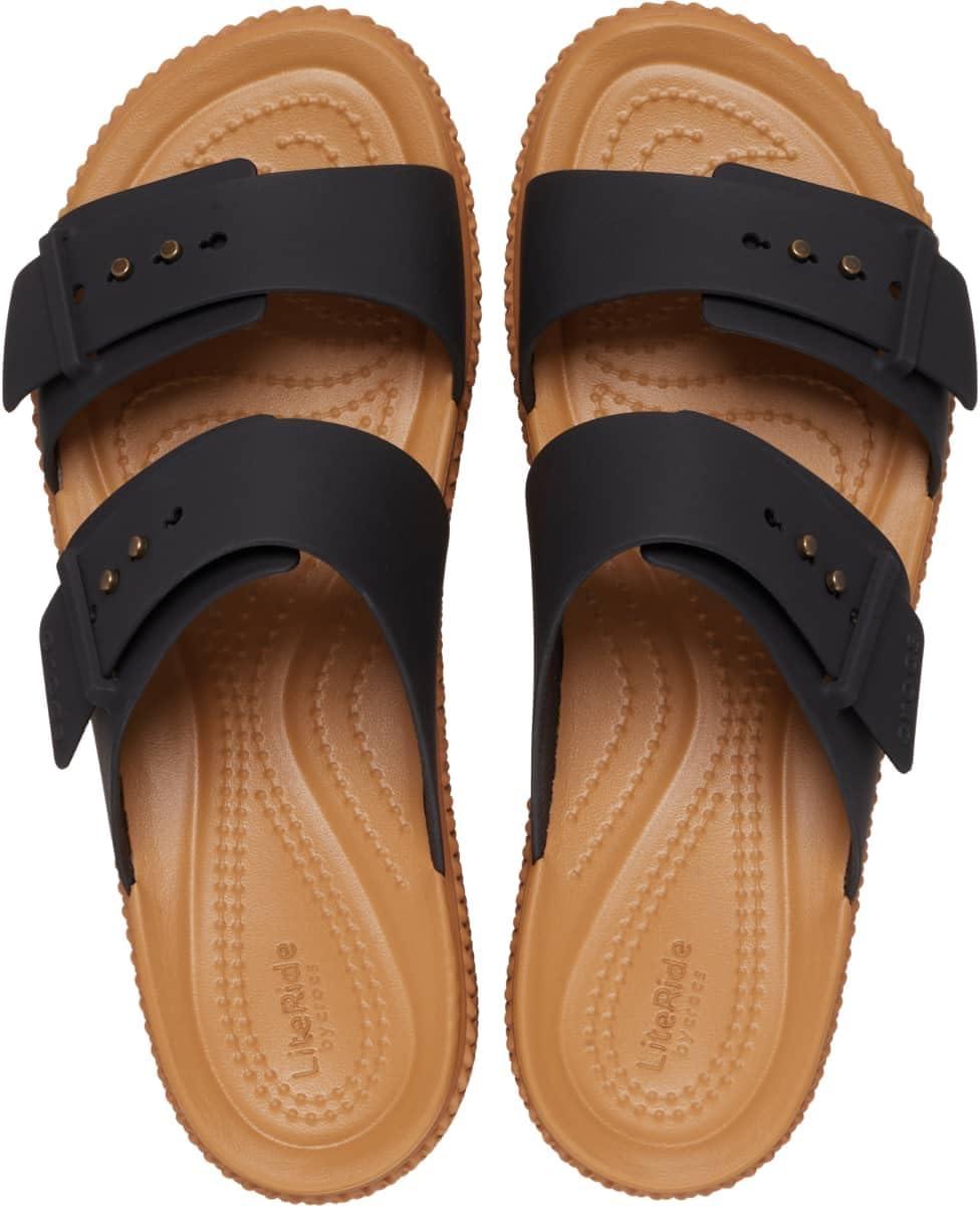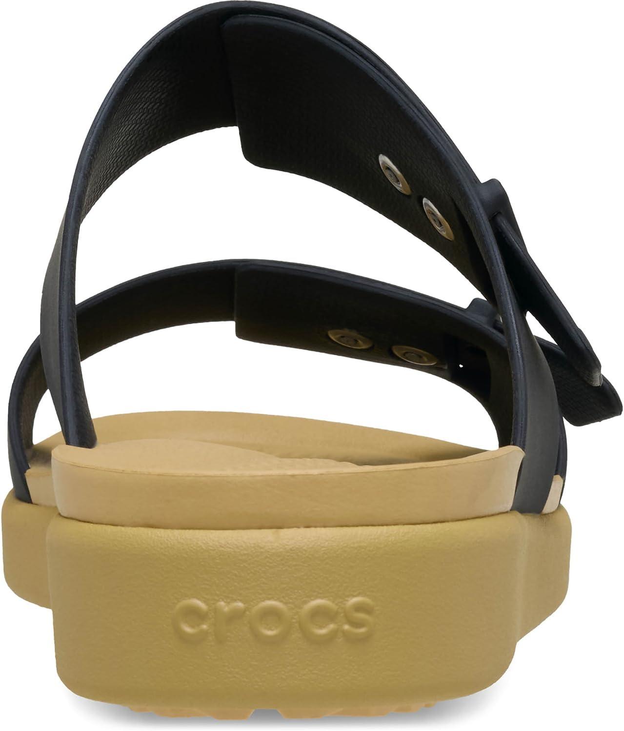 Crocs Women’s Brooklyn Buckle Low Wedges(Black/Tan)
