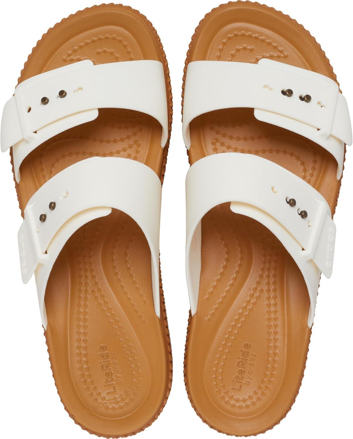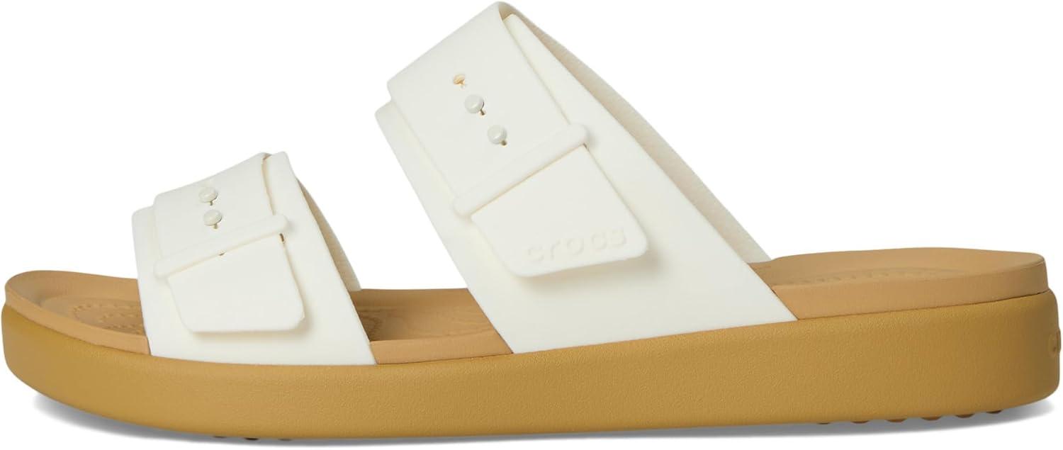 Crocs Women’s Brooklyn Buckle Low Wedges(Chalk/Tan)