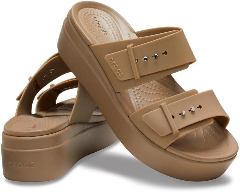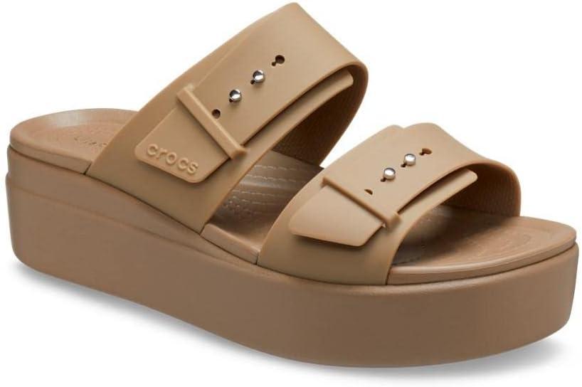 Crocs Women’s Brooklyn Buckle Low Wedges(Khaki)