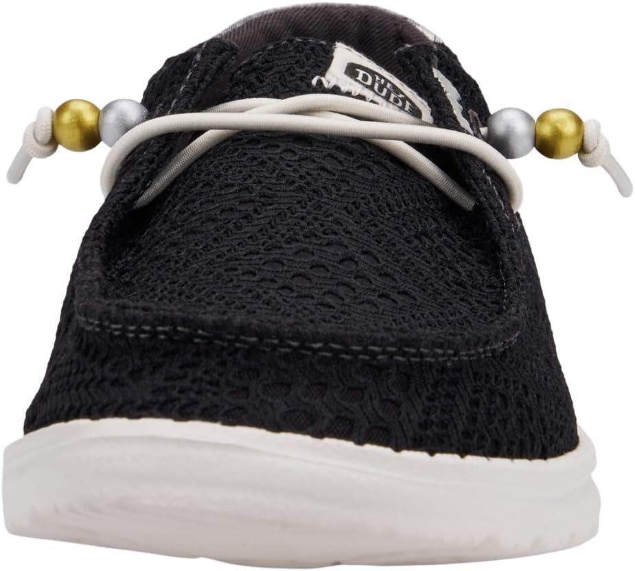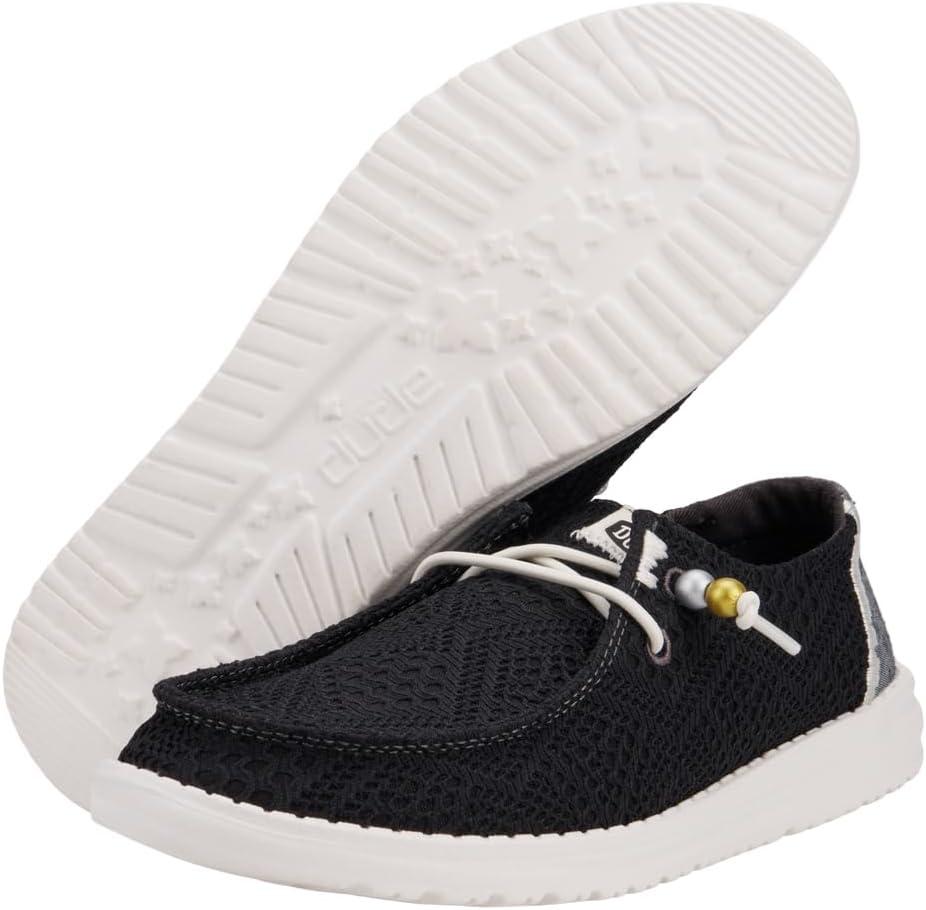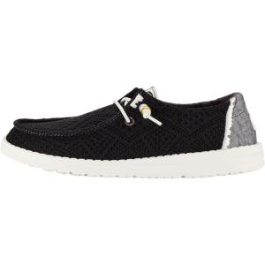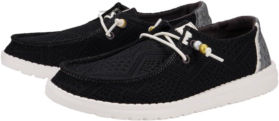 Hey Dude Wendy Boho Crochet Loafers for Women – Textile Upper & Lining – Lace-up Closure – Textile Outsole(Black)