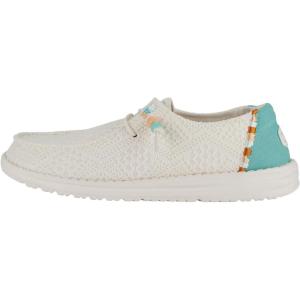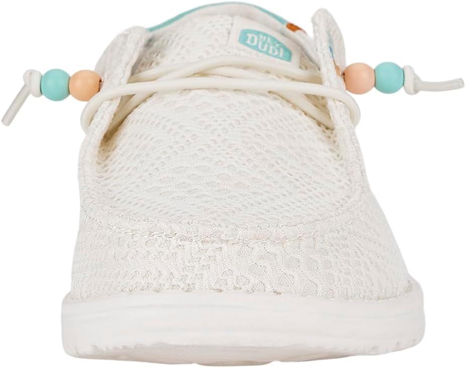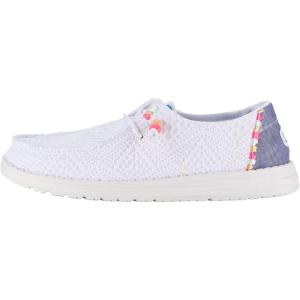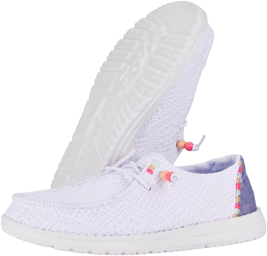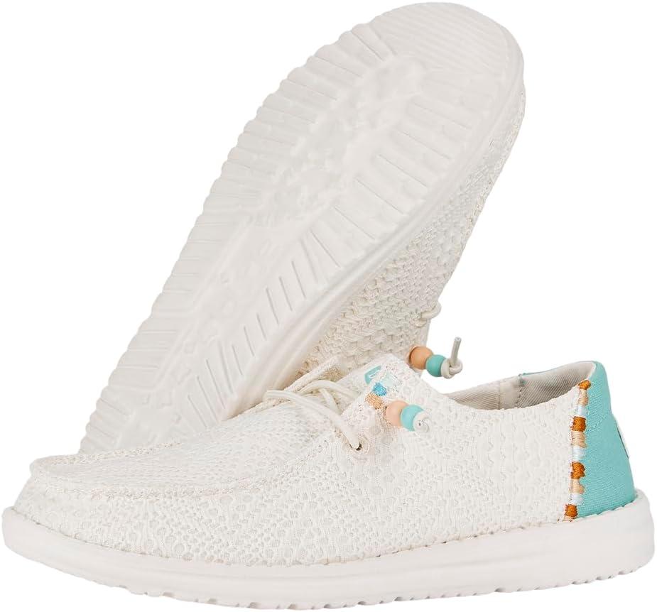 Hey Dude Wendy Boho Crochet Loafers for Women – Textile Upper & Lining – Lace-up Closure – Textile Outsole(White)