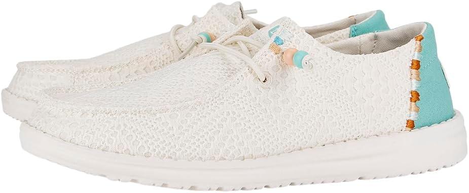Hey Dude Wendy Boho Crochet Loafers for Women – Textile Upper & Lining – Lace-up Closure – Textile Outsole(Off-white)